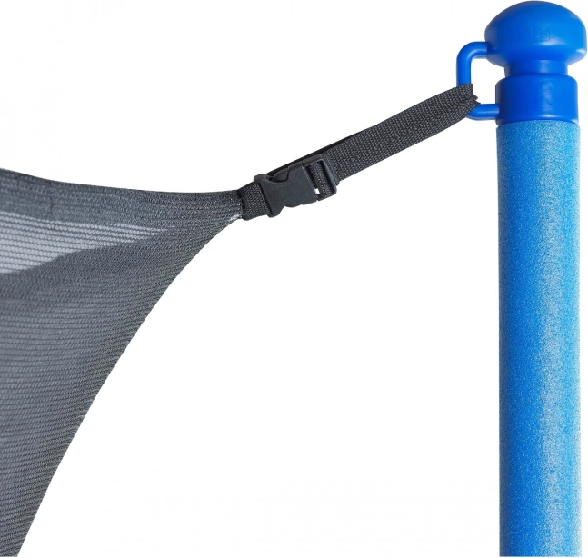 Des sangles et boucles robustes fixent solidement le filet aux poteaux en acier bleus, ce qui augmente la stabilité générale et la durabilité.