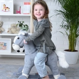 Adorable cheval à bascule 2‑en‑1 en peluche grise avec roulettes qui ravira chaque petit cavalier. Grâce à la combinaison balancement et roulage, il offre un double amusement, tandis que la peluche douce et la base en bois stable assurent confort et sécurité. Charge maximale 50 kg, pour enfants à partir de 3 ans, avec certification CE.