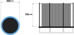 Le filet intérieur empêche le contact avec les poteaux et les ressorts et crée une zone de saut sûre pour un diamètre de 305 cm.