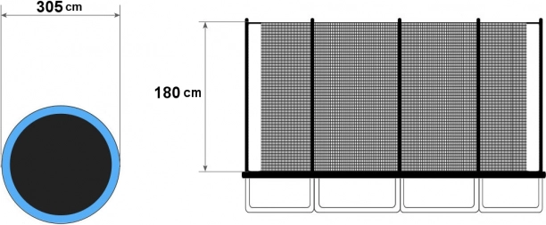 Grâce à sa fixation universelle, le filet est compatible avec des trampolines de différents fabricants dotés de 4 pieds doubles (8 poteaux). La hauteur de 180 cm empêche efficacement les chutes de la zone de saut et la conception imperméable garantit une longue durée de vie même en extérieur.