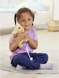 ChiChi Love Loomy avec câble lumineux sait marcher, aboyer et remuer la queue. La télécommande blanche en forme d’os de chien est reliée par un câble, ce qui la rend facile à utiliser. La laisse lumineuse constitue un atout particulier. En appuyant et en maintenant le bouton, l’éclairage s’active automatiquement, permettant aux enfants de promener le chien même dans l’obscurité.