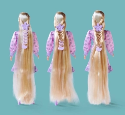 Les longs cheveux blonds de la poupée offrent d’innombrables possibilités de coiffure et de styling créatif.