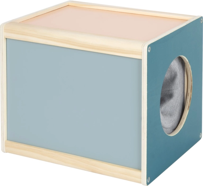 Notre jouet offre un divertissement polyvalent et durable grâce à deux ouvertures latérales permettant aux enfants de toucher différents objets à l’intérieur. Parfait pour les jeux de mémoire, de recherche ou de reconnaissance. Cette boîte est fabriquée en bois et présente un design moderne et coloré.