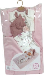 Une composition axée sur la durabilité — coton biologique, laine et tissus recyclés — apporte confort tout en favorisant une production responsable de jouets. L’ensemble est conçu pour les poupées de 40 cm (type bébé) et comprend au total 4 pièces faciles à assortir.