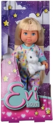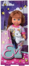 Adorable poupée Evi en pyjama tout doux avec une licorne en peluche qui ravira chaque enfant. Trois variantes différentes, idéal pour le jeu créatif et imaginaire. Hauteur de la poupée 12 cm, convient dès 3 ans.