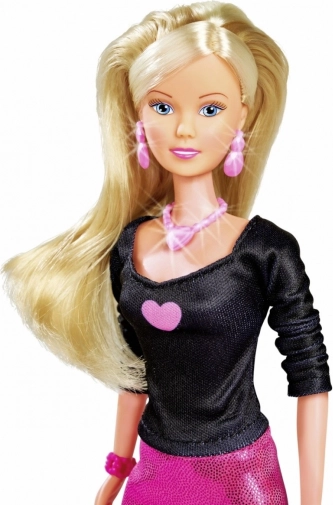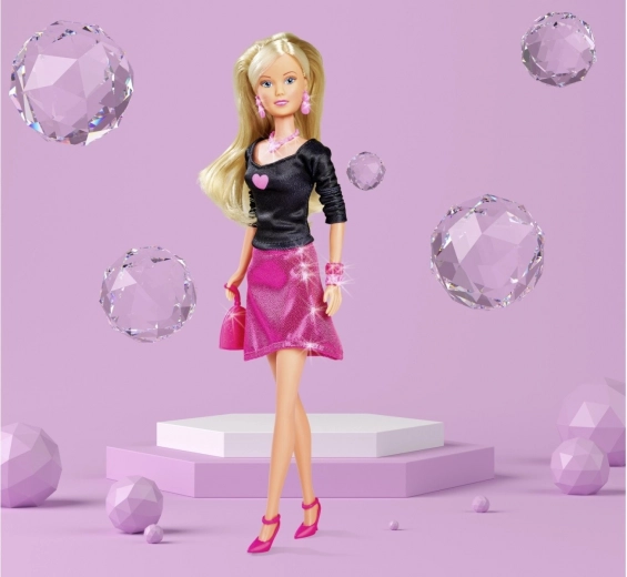La poupée STEFFI LOVE – Jewelry Shop apporte aux enfants un monde de fantaisie, de mode et d’éclat. Steffi séduit avec un ensemble scintillant deux pièces : un top de soirée imprimé cœur et une jupe rose assortie. Le riche ensemble de bijoux et d’accessoires stimule le stylisme créatif et l’imagination des enfants.