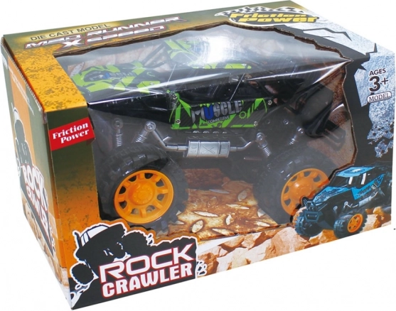 Ce modèle de rock crawler robuste est fait pour l’aventure. Grâce à son entraînement à friction, il suffit de tirer la voiture sur la surface et de la lâcher – elle part immédiatement vers l’avant. Les grandes roues tout-terrain et le châssis surélevé franchissent les obstacles, les tapis et les surfaces extérieures.