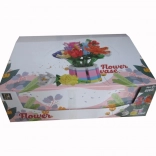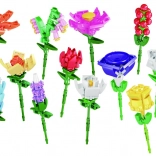 Assemblez un bouquet composé de pièces en plastique de différentes couleurs et formes. Chaque fleur est unique et offre des possibilités infinies de création.