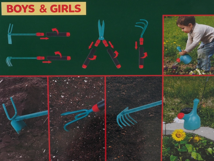 Un ensemble d’outils de jardinage sûrs pour les enfants dès 3 ans. Le kit contient tout le nécessaire pour travailler au jardin. Les outils sont sûrs, sans bords tranchants et ont une taille idéale pour les petites mains. Les poignées des outils sont en plus amovibles. Le kit est proposé dans un coloris universel, idéal pour les garçons comme pour les filles. |