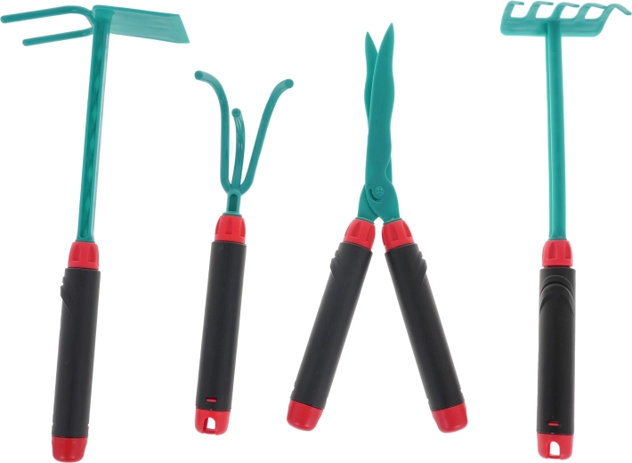 - gants, .- grand arrosoir, .- binette .- cultivateur manuel, .- ciseaux, .- râteau. . |