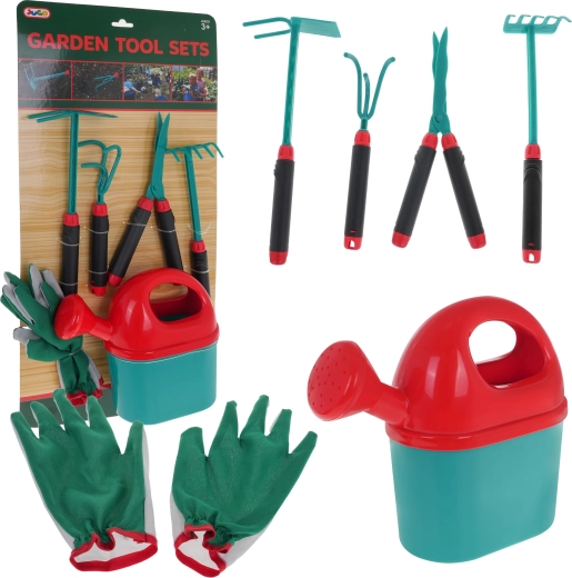 - gants env. 21,5 cm x 12,5 cm, largeur en haut 7,5 cm à 10,5 cm, doigts d’env. 6 cm de long, .- grand arrosoir env. 22 cm x 19,5 cm x 8 cm, .- binette env. 26,5 cm x 10,5 cm x 4,5 cm, .- cultivateur manuel env. 21 cm x 5,5 cm x 5 cm, .- ciseaux env. 24 cm x 9 cm x 2 cm, .- râteau env. 26 cm x 6,5 cm x 5 cm, .- housse env. 28 cm x 58 cm x 8 cm. . |