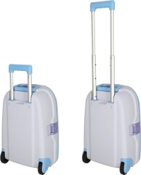 La poignée télescopique, les deux roues et le pied de stabilisation permettent de diriger la valise confortablement sans basculer – idéal pour les petits voyageurs.