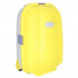 Valise cabine pour enfant, légère et résistante, dotée de deux roues et d’une poignée télescopique pour voyager confortablement. Elle offre une grande capacité grâce à deux compartiments, des roues LED lumineuses pour plus de visibilité et de fun, ainsi que la possibilité d’indiquer le nom à l’aide d’autocollants. Sa couleur jaune vive et ses motifs en relief ludiques raviront tous les petits voyageurs.
