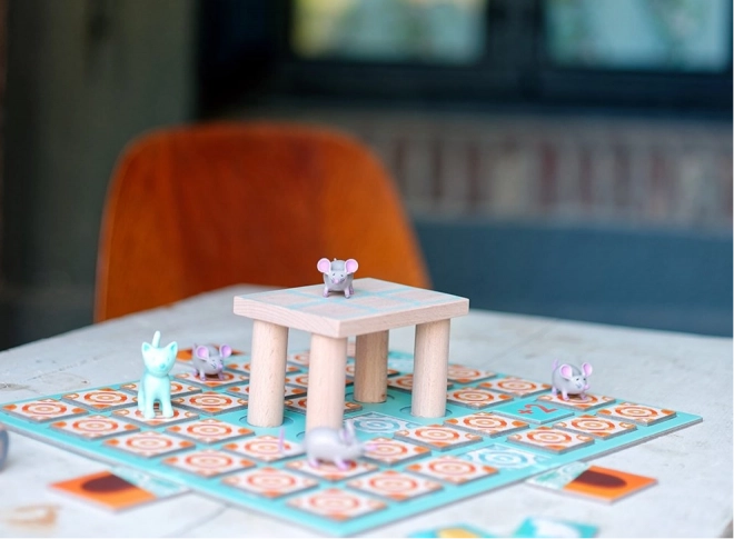 Partez dans un univers de coups malins et de bluff. Dans le jeu familial Djeco Chop! Chop!, un joueur incarne une souris rusée en quête de fromage, tandis que l’autre contrôle un chat futé. L’objectif est clair : la souris doit collecter 10 morceaux de fromage avant que le chat ne la capture. La tension monte à chaque lancer de dé et à chaque déplacement sur le plateau.