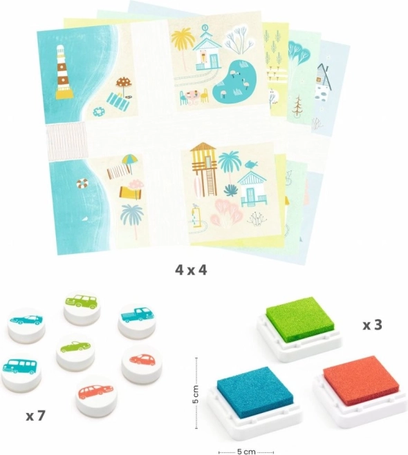 L'ensemble de tampons Voitures de DJECO est l'outil parfait pour les petits artistes, contenant tout le nécessaire pour créer de magnifiques images sur le thème des voitures. Les enfants peuvent créer leurs propres scènes et histoires à l'aide de tampons colorés et de cartes.