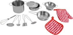 Ce set réaliste en métal, composé de casseroles et d’ustensiles, est idéal pour les cuisines pour enfants et les jeux de maison, bistrot ou restaurant. Le classique coloris argenté s’intègre parfaitement à tout coin de jeu, et le couvercle universel s’adapte à toutes les casseroles. Grâce à sa construction légère et à ses dimensions compactes, l’ensemble se transporte et se range facilement.