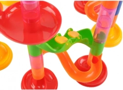 Jouer avec la piste développe la réflexion logique, la compréhension de la cause et de l’effet ainsi que les principes de base de la gravité et de la vitesse. Les enfants observent le mouvement des billes, testent différentes assemblages et renforcent ainsi leur patience, créativité et motricité fine.