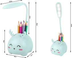 Cette lampe LED multifonctionnelle pour enfants au design animalier joyeux rend la chambre plus chaleureuse et aide à garder le bureau en ordre. Grâce au bras flexible, vous dirigez facilement la lumière exactement là où il faut — pour la lecture, les devoirs ou un éclairage apaisant le soir.