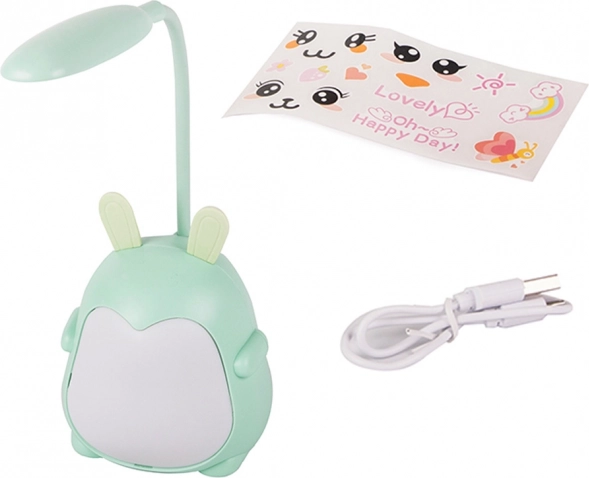 Adorable lampe de table pour enfants avec éclairage LED et rétroéclairage RGB offrant une lumière agréable et sûre pour la lecture et l’endormissement. Elle propose 3 modes d’éclairage, un col flexible pour un réglage précis de l’orientation et une charge via USB. Le colis inclut également des autocollants pour la personnalisation, permettant aux enfants de créer le look de leur lampe.