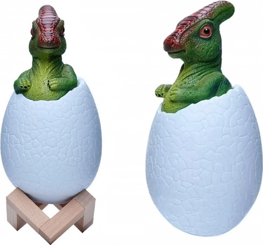Un dinosaure finement détaillé sortant d’un œuf fissuré sur un support en bois décorera toute chambre d’enfant et stimulera l’imagination des petits explorateurs.