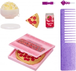 Grâce à sa mobilité entièrement articulée (tête, épaules, coudes, mains, hanches, genoux), Violet est prête pour poser, être photographiée et rejouer des scènes de la série préférée. Les accessoires thématiques pour la soirée cinéma – pizza en boîte, popcorn, petite assiette et limonade – ouvrent la voie à des heures de jeu imaginatif.