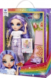 Découvrez un monde de couleurs et de style avec la poupée Rainbow High Junior High – Violet Purple. Cette poupée, à la fois de collection et de jeu, est fantastique dans son pyjama violet à carreaux, avec un t-shirt tout doux et des pantoufles assorties. Ses longs cheveux violets, ses cils marqués et ses yeux en verre offrent un look réaliste et enchanteur que les enfants adorent.