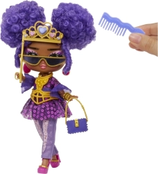 Cassie Cool séduit par sa tenue scintillante et ses cheveux violets saisissants. Le set comprend des lunettes, un sac à main, une couronne et d’autres pièces mode pour des combinaisons infinies.