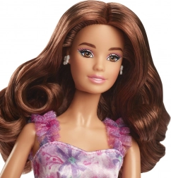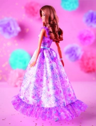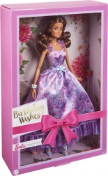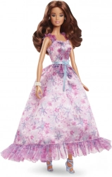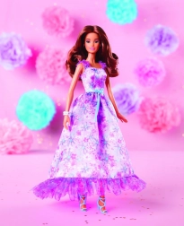 Découvrez le cadeau d'anniversaire parfait avec la poupée Barbie Birthday Wishes. Cette élégante poupée porte une superbe robe violette à motif floral, captivante par son style et ses détails.