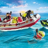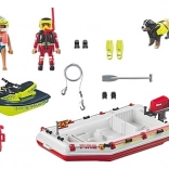 Le bateau de pompiers avec scooter des mers de PLAYMOBIL offre des aventures pleines d’action et de missions de sauvetage courageuses. Le set comprend :