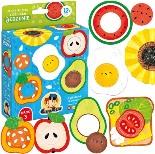 - 7 grands puzzles de deux pièces sur le thème de la nourriture