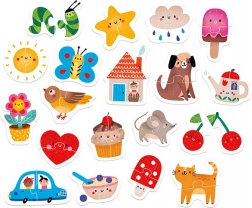 Découvrez le premier puzzle pour les tout-petits ! Mes premiers puzzles – paires contiennent 19 images colorées en deux pièces qui motivent les enfants à jouer et à apprendre. Ils entraînent l’observation, la pensée logique et la motricité fine de façon ludique. Idéal pour les enfants qui commencent les puzzles, avec la possibilité de jouer à reconnaître les couleurs, les mots et de petites devinettes amusantes.
