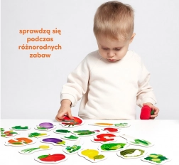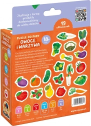 Les puzzles colorés présentent de saines gourmandises du potager et du verger. Chercher et associer les moitiés est un jeu de développement polyvalent qui améliore la coordination œil-main et permet d’apprendre et de consolider de nouveaux mots et des connaissances sur le monde qui nous entoure de manière ludique.