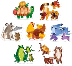 Hé les bouts de chou, il est temps pour vos premiers puzzles en plusieurs pièces ! De gentils animaux et leurs parents vous invitent à vous lancer. Mon premier puzzle pour tout-petits est un set éducatif qui comprend 4 puzzles colorés, chacun composé de 4 grandes pièces.