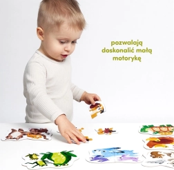 Trouver les pièces correspondantes affine l’observation. Les revers de couleurs différentes vous y aideront. Assembler des puzzles est un excellent entraînement pour la motricité fine et la représentation spatiale.