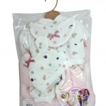 Ce set pratique contient tout le nécessaire pour habiller avec style une poupée bébé de 38 cm. Une excellente base de garde-robe pour poupées.