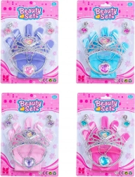 Un ensemble d’accessoires féerique pour les petites princesses comprend tout le nécessaire pour se parer : gants, couronne (12,5 cm), serre-tête, collier et boucles d’oreilles. Disponible en 4 coloris – bleu, violet, rose et rouge.