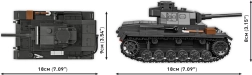 Le COBI Panzer III Ausf. J est un kit soigneusement conçu, inspiré du front de l’Est de la Seconde Guerre mondiale. Le modèle propose une trappe ouvrante, une tourelle rotative, un canon mobile et des roues avec chenilles fonctionnelles. Grâce aux nombreux marquages, le char paraît réaliste et reproduit fidèlement les formes de l’original historique.