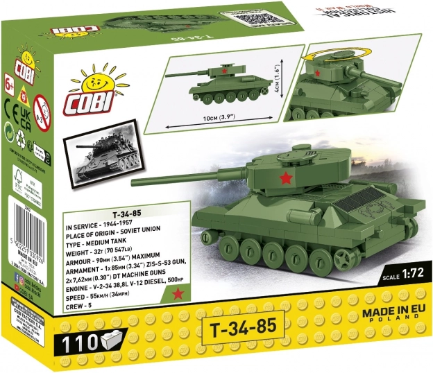 Le T-34-85 compte parmi les chars les plus célèbres de la Seconde Guerre mondiale et, avec ce kit COBI, vous en construirez une réplique fidèle. Un plastique de qualité, des pièces moulées avec précision et une conception bien pensée garantissent un assemblage facile et une résistance lors du jeu. Le kit est idéal pour les enfants dès 6 ans, mais ravira aussi les collectionneurs et les passionnés d’histoire militaire.