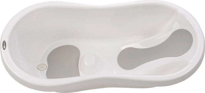 Zone allongée et assise spécialement profilées avec des surfaces antidérapantes pour un bain sûr et confortable dès le premier jour.