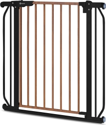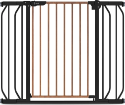 Grâce à deux rallonges de 10 cm, vous adaptez facilement la barrière à différents passages, portes et couloirs. L’acier robuste et le décor bois s’harmonisent avec un intérieur moderne.