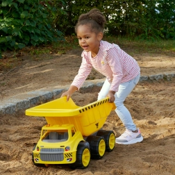 La benne basculante BIG Power Worker Mega est conçue pour de petites mains et de grandes idées. Son design jaune éclatant avec des motifs modernes ressemble à un véritable véhicule de chantier, tandis que la benne de 13 litres transporte sable, eau et jouets. Avec une longueur de 65 cm, elle est d’environ 30 % plus longue que le modèle plus petit de la gamme BIG Power Worker Maxi et offre encore plus d’espace de jeu.