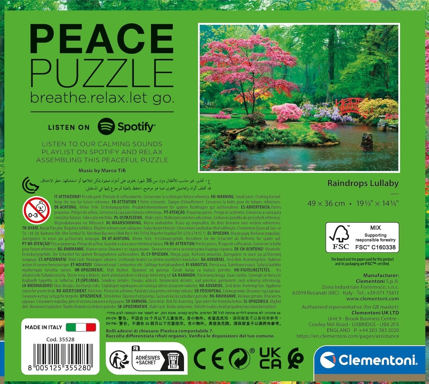 Plongez dans le rythme méditatif de l’assemblage avec le puzzle Peace Collection : Raindrops Lullaby. Cette élégante collection de la marque Clementoni est conçue pour favoriser la concentration, la détente et le plaisir visuel. Une impression de qualité aux couleurs intenses et des tenons précis garantissent que chaque pièce s’emboîte en douceur.