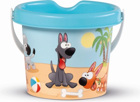 Seau coloré avec un motif de joyeux petit chien, idéal pour jouer dans le sable. Fabriqué en plastiques de qualité en Italie, il garantit des moments sûrs et amusants pour votre enfant.