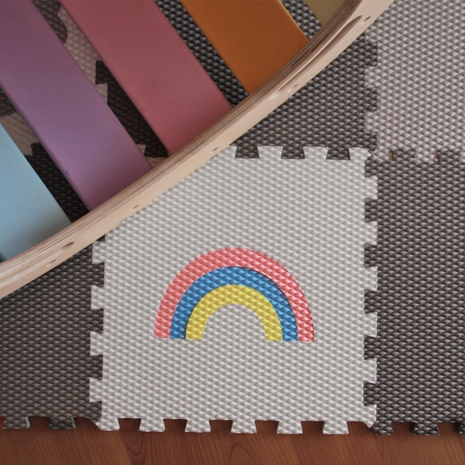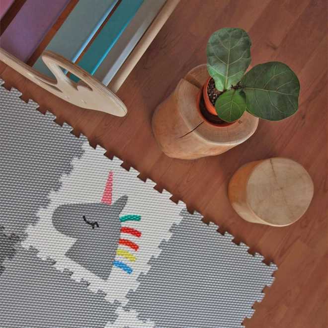 Créez pour les enfants un coin sûr et confortable avec un tapis en mousse de 12 pièces au motif de licorne grise, d’arc-en-ciel et d’animaux. Les pièces s’emboîtent fermement grâce au système à verrouillage, le sol est doux, isolant et facile à nettoyer. Le matériau Vylen est certifié, sans danger pour la santé et fabriqué en République tchèque.