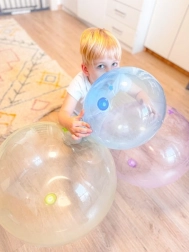 Le design transparent et coloré ajoute de la magie au jeu – la bulle est douce au toucher mais suffisamment solide pour les cabrioles du quotidien. Elle se gonfle et se dégonfle facilement, ce qui la rend idéale en voyage comme pour s’amuser tous les jours.