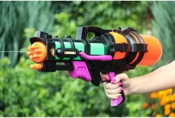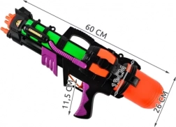 Ce pistolet à eau allie taille, performance et confort. Son grand réservoir de 1,25 litre prolonge le jeu sans recharges fréquentes, et sa portée de env. 6 mètres garantit un jet d’eau impressionnant. L’utilisation est facile : dévissez le réservoir, remplissez-le d’eau, refermez et, à l’aide du curseur inférieur, pompez – prêt à arroser.