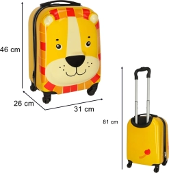 La valise pour enfant au motif du roi de la jungle ravira chaque petit et facilitera la préparation des week-ends comme des vacances. Grâce à ses dimensions compactes et à son faible poids, elle est facile à manœuvrer et répond aux exigences du bagage cabine. Sa coque rigide en plastique protège le contenu et sa couleur jaune éclatante avec motif de lion ne passe pas inaperçue.