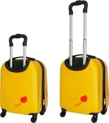 Quatre roulettes pivotantes et une poignée télescopique extensible permettent aux enfants de guider la valise sans effort, même dans l’agitation des aéroports.