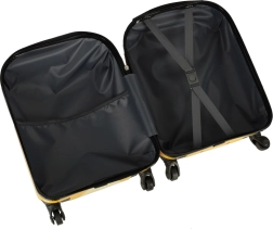 Quatre roulettes fluides et une poignée télescopique extensible garantissent une conduite confortable même pour les petites mains. L’agencement intérieur, avec cloison zippée et sangles élastiques, maintient les affaires en place pour un emballage clair et sécurisé.
