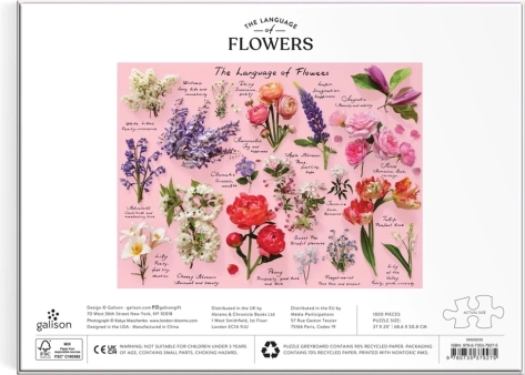 Le puzzle Galison Langage des Fleurs de 1000 pièces est un défi unique pour l’esprit et les yeux. Plongez dans l’univers des fleurs printanières et estivales qui non seulement raviront votre regard, mais enrichiront votre âme par leurs significations cachées.
